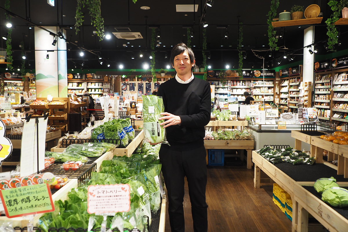 望月店長は、自ら畑に足を運び、収穫されたばかりの野菜を直接仕入れに行くほどの熱意の持ち主。「のうみんずさんの野菜は、ファンが多いんです」と語る望月店長。