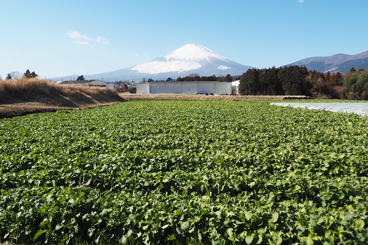 富士山の恩恵をたっぷりと受ける阿多野は、まさに水かけ菜栽培にうってつけの土地。こうした環境のもと、水かけ菜は冬の水田を有効に活かす裏作として、140年もの間この地に深く根付いていきました。