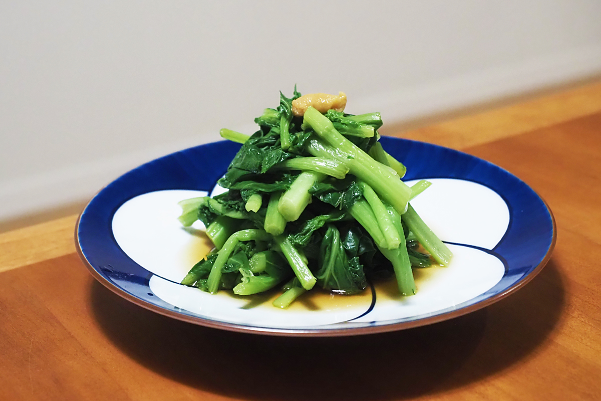 生の水かけ菜が手に入ったら、まずはシンプルな「お浸し」がおすすめ。さっと茹でて出汁に浸せば、シャキシャキと小気味よく、噛むほどに澄んだ甘みが広がります。
