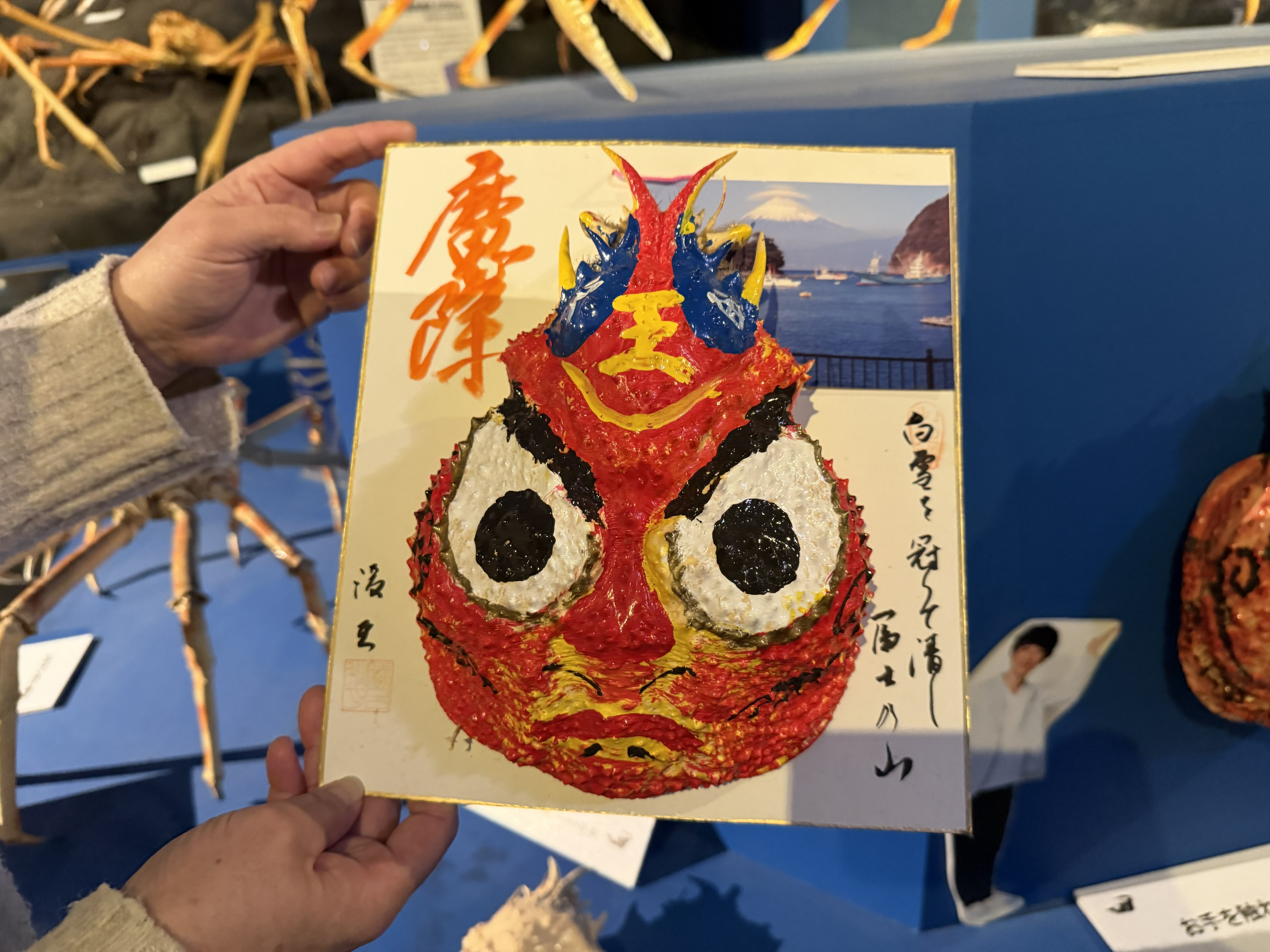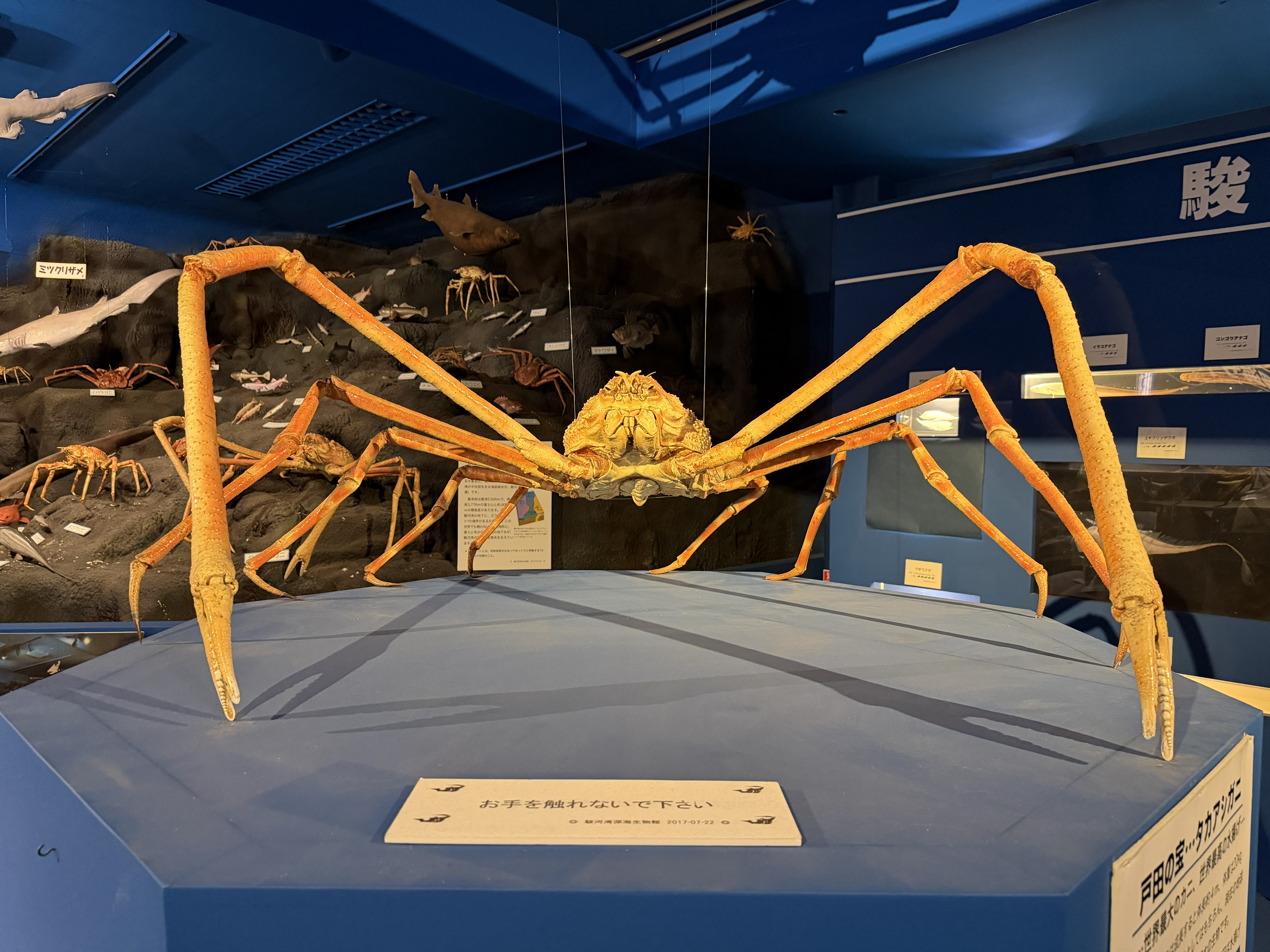 「戸田造船郷土資料博物館」と、併設する「駿河湾深海生物館」では、タカアシガニのはく製展示や、魔除けのお面を見ることができます。