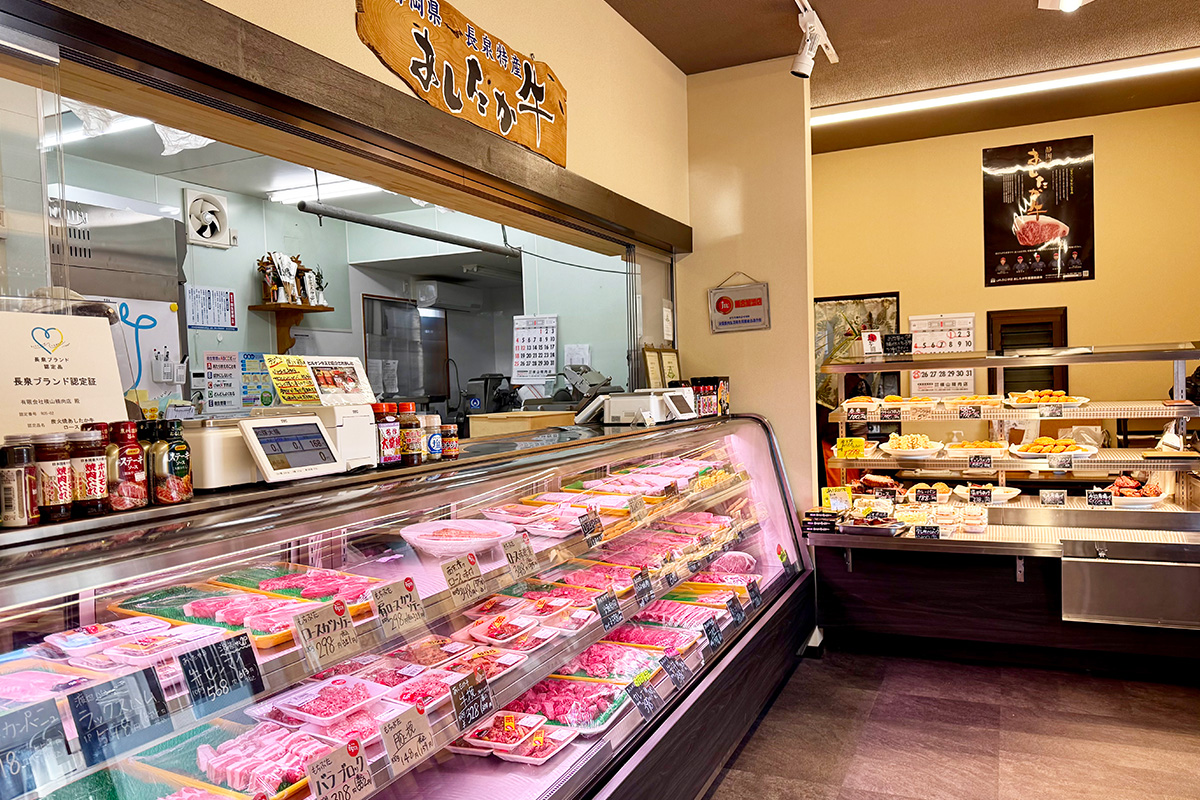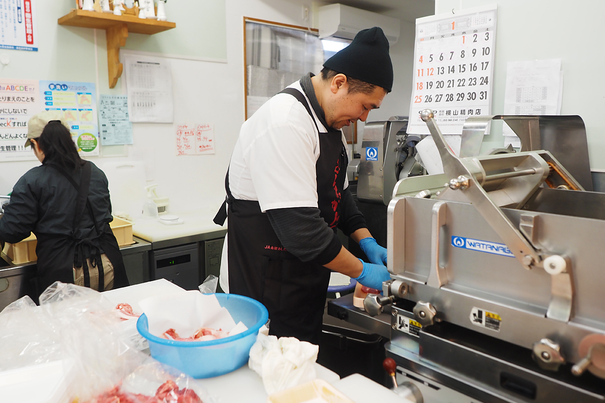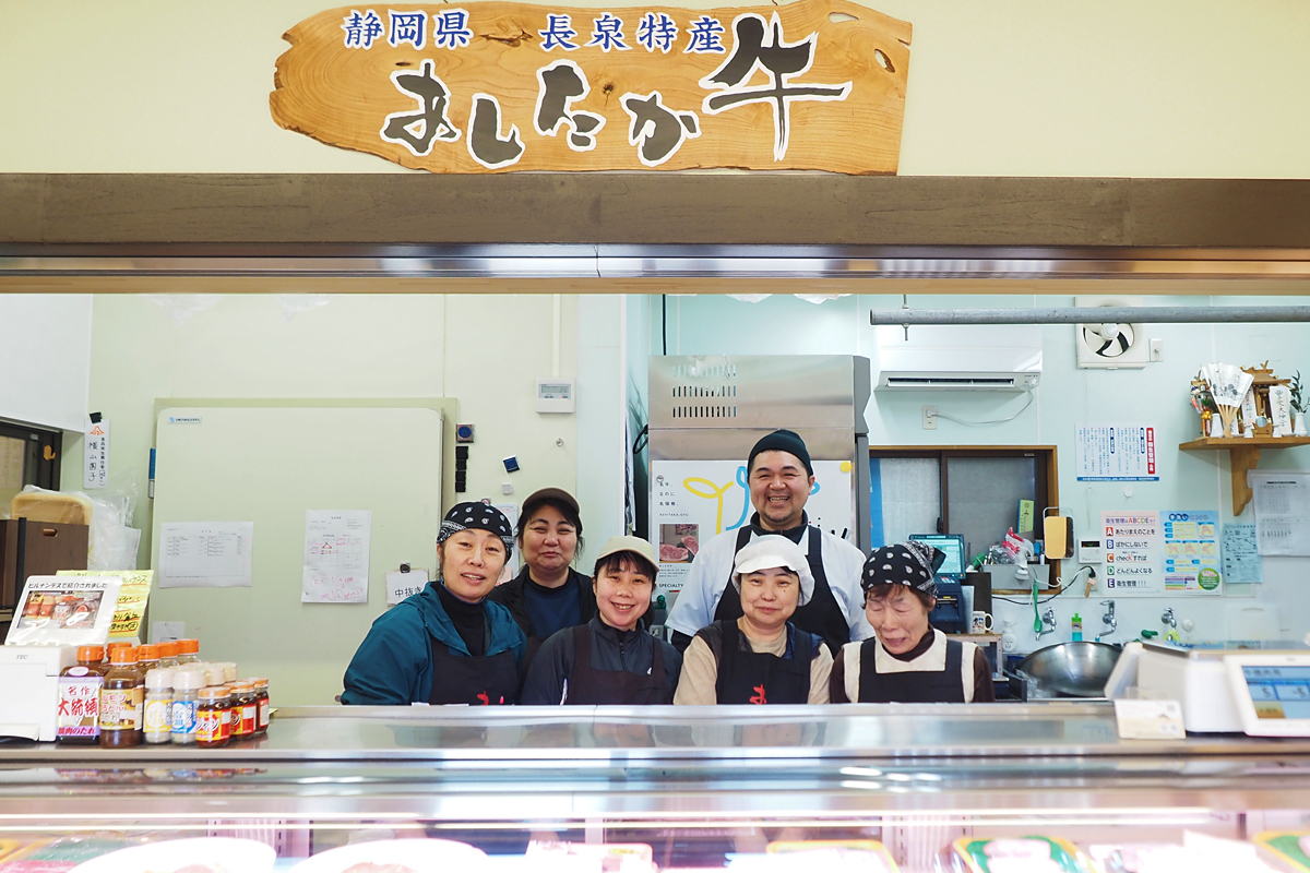 沼津市を離れ、愛鷹山の東麓に位置する長泉町の「横山精肉店」を訪ねました。ここは1940年に家畜の仲買としてスタートした、80年以上の歴史がある老舗。1965年の店舗開業以来、“まちのお肉屋さん”として親しまれてきました。