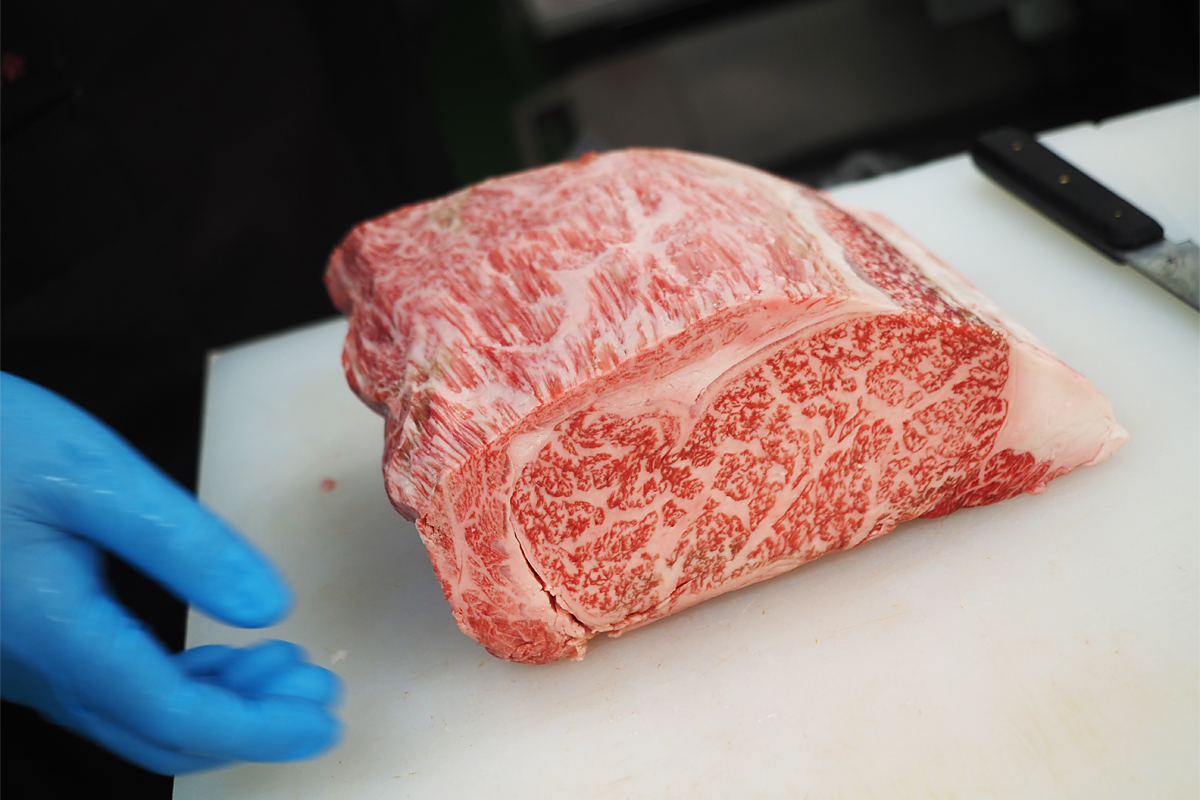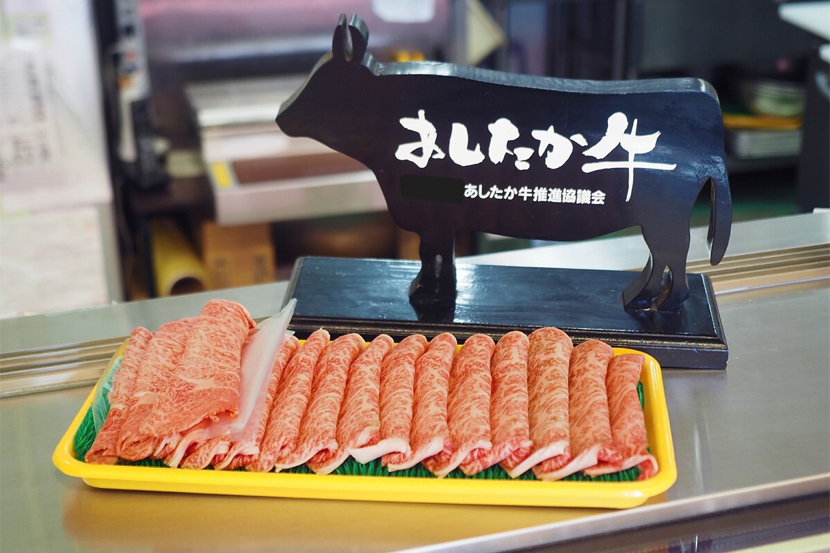 あしたか牛は、過去に開催された全国の品評会で、最高位の最優秀賞(日本一)に輝いたこともある銘柄。この美しい霜降りを見れば、名だたるブランド牛がひしめき合うなかで「最も優れた一頭」と認められたのも頷けます。
