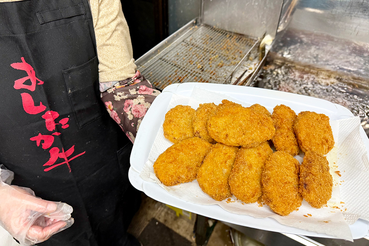 「余計なものは入れない無添加。お肉の味を信じていますから」と店長の輿五澤さん。「揚げたて」は運次第ですが、いつでも買える「冷凍」は食卓の強い味方です。
