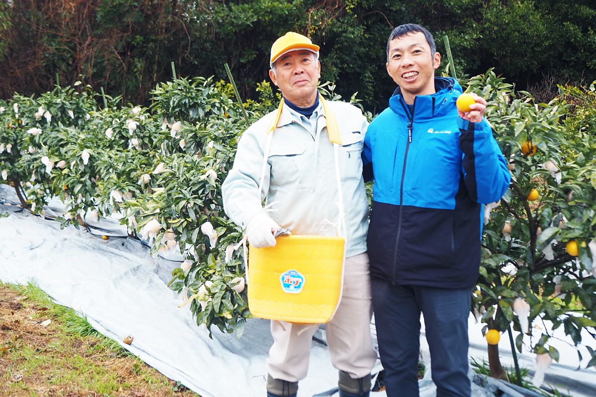 「河津桜と一緒に楽しめる柑橘として、農協ブランドを大切に育てていきたい」と土屋さん親子は意気込みを語ります。