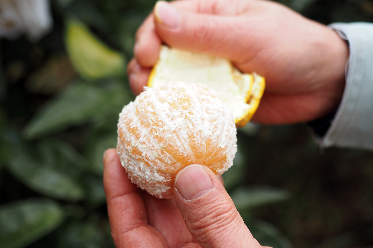 「温州ミカンと同じくらいのサイズで、皮がとても柔らかく、果汁がたっぷり詰まっているのが『いずのはる』の魅力です」と明浩さん。
