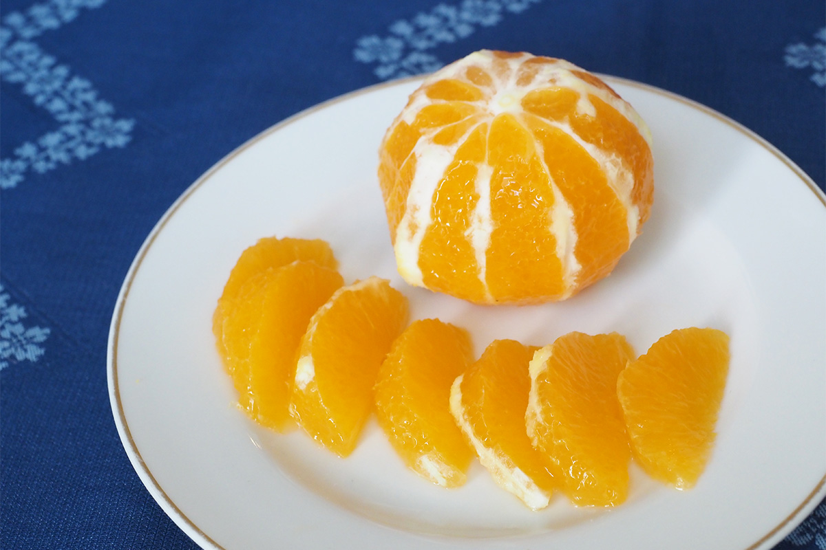 もしナイフでカットするなら、少しコツがあります。種が多くて房もしっかりしているので、横に切る「スマイルカット」ではなく、縦に切る「房カット(くし形切り)」がおすすめ。この切り方なら、食べやすさがぐんとアップします。
